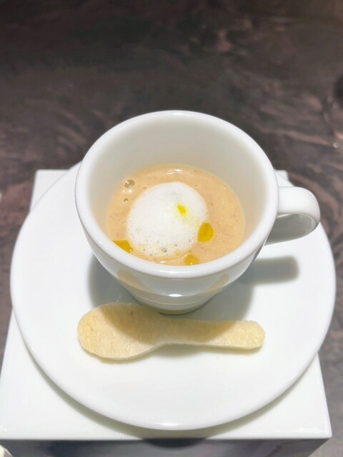 鱸の淡泊な中にも旨味のある身に、とうもろこしの甘みと食感がよく合う。