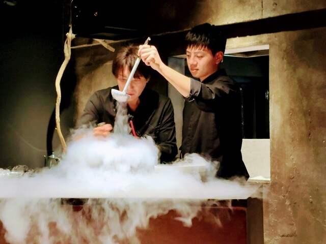 世界的名店で修業を積んだ薮中シェフが手掛ける、創作料理と演出が融合した食の舞台。