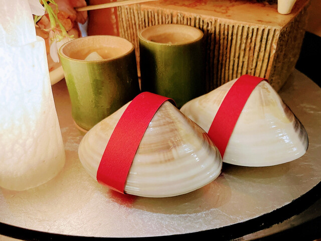 ・桑名の蛤、三つ葉と海苔を使ったお浸し