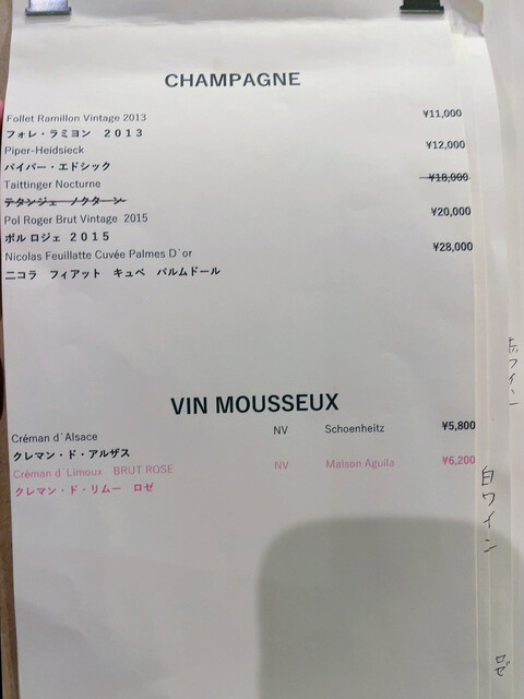 ワインも泡,白,赤と楽しんで1人9,000円ほど。