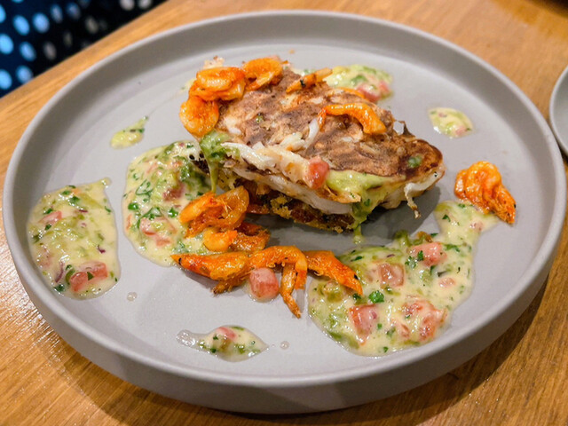 ソースが筆舌に尽くし難いほど美味で、生海苔の香りが和のエッセンスを付加する。