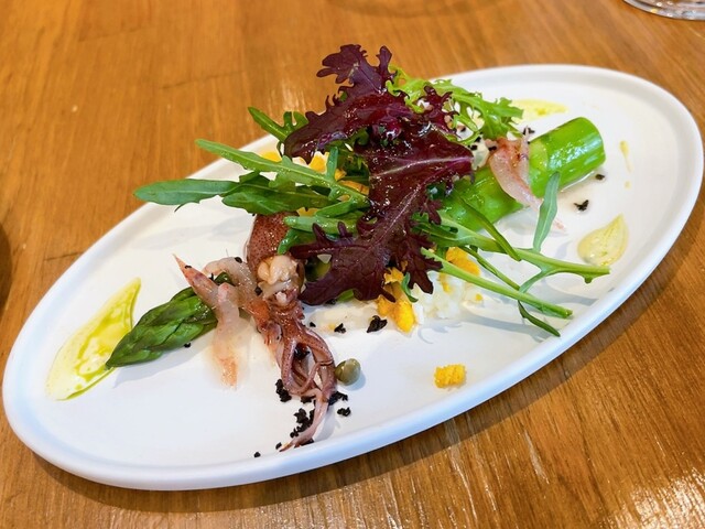 添えられた極太の新鮮なアスパラガスは、シャキッとした歯ごたえとみずみずしさで、食べごたえも十分。