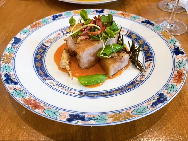 しっとりとジューシーにローストされたイベリコポークは、一口頬張れば豊かな甘みと深いコクが広がる。