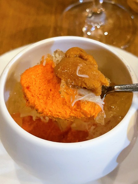 蟹の上品な旨味と、まろやかに広がる北海道産雲丹の濃厚なコク。