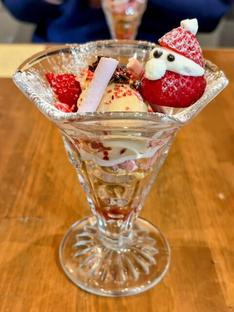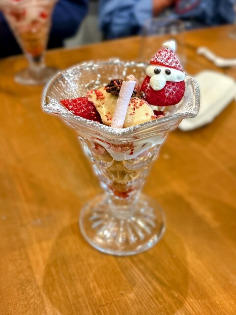 苺で型どったサンタが愛らしく、食後の空気をやさしく和ませる。