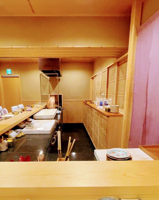 店に足を踏み入れるとL字に配置された美しい白木のカウンターの空間が広がる。