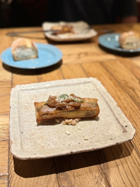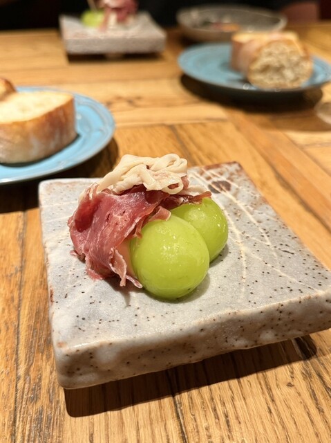 アルコールはオレンジワインで乾杯。ここ器もツボなんですよね。赤ワインとカシスを練り込んだパンがほのかに香って美味しかったです。お肉は5種類くらいから選ぶのですが、ローストビーフと鴨肉ヒレを選びました。鴨肉は柔らかくて美味しかったです。ローストビーフはタレがなく味がしなかったのが残念でした。