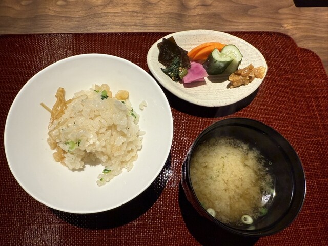 3種類の料理法が違った大根が入ってる炊き込みご飯でした。切り干し大根、角切りの油で揚げた大根、銀杏切りの煮た大根が入ってました。