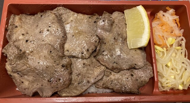 こちらの牛タン弁当をいただきました。お弁当の見た目はとてもシンプルです。ご飯の上に牛タン。なますとナムルが横に添えてあります。想像していた味をはるかに超えて本当美味しいです。これまで食べた牛タン弁当の中では間違いなくナンバー1でした。厚切りに切られた牛タンと塩胡椒、レモンが相まって絶妙なお味に仕上げられています。お店にも食べに行きたくなりました。