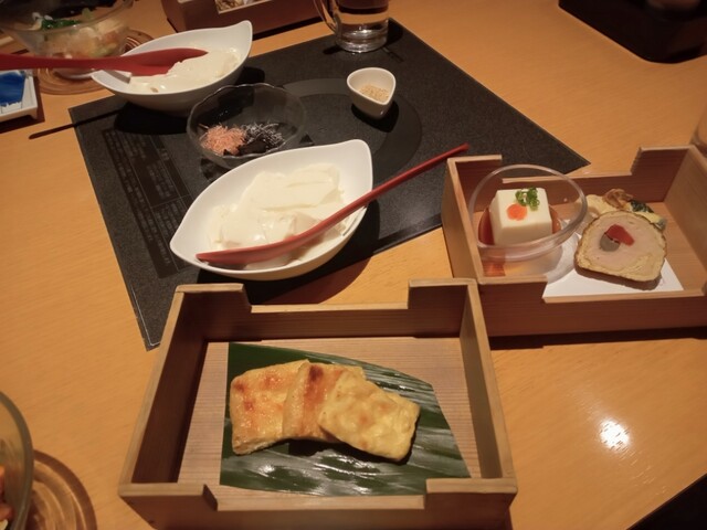 初来訪。平日の夜だったせいか、行列はできておらず、15分くらい待ち入店。JR伊勢丹のレストラン街にあるお店。お豆腐と湯葉のお料理が様々な調理方法で提供される。どれも味付けが優しくて素材の味を活かしていておいしい。最後はお抹茶を目の前で点てていただきデザートと一緒に一服。接客はおもてなしが随所に感じられ、京都駅周辺の夜景を見ながら楽しくお食事ができました。ありがとうございました。