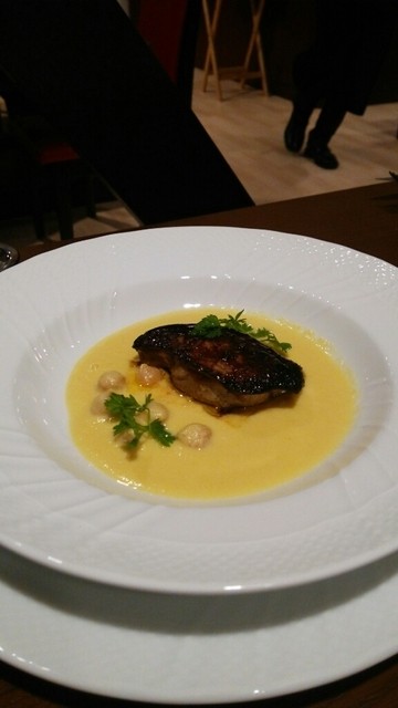ディナーコースの1品ファグラのコーンクリーム仕立
