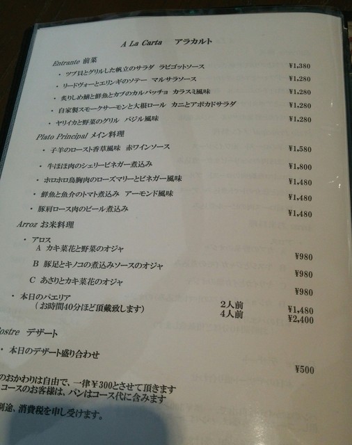 アラカルトメニュー