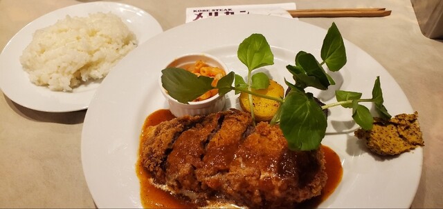 16時45分前に到着、お店に入ると17時からですとのこと。予約でいっぱいですが、17時50分までで良ければと赤身ビフカツコースの予約を入れました。