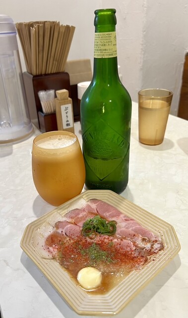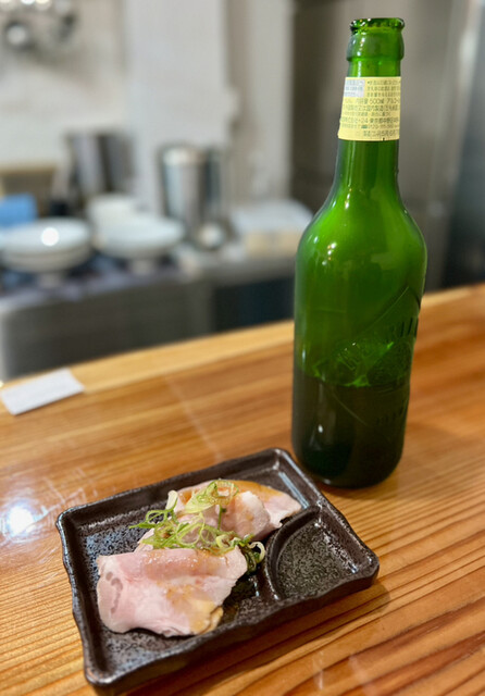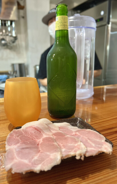 いつものビールとアテのチャーシューがスターター。