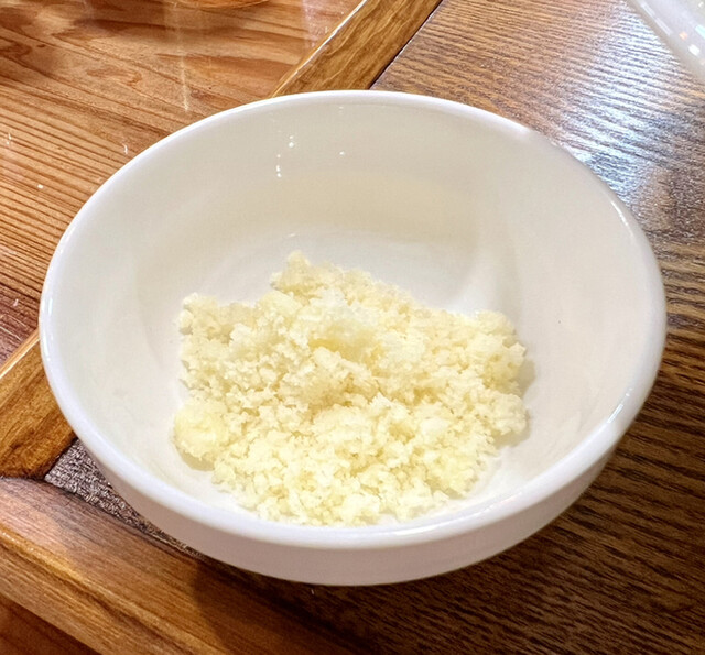 ・具材(アヒージョ・チャーシュー・岩のり・ネギ)の味付け・量のバランスが素晴らしく一つずつ味わい、全て混ぜて食べた時の調和の取れ方に感動を覚えた。