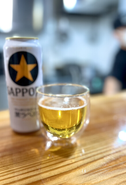 アテと一杯目をゆっくりと味わい、いよいよメインの牡蠣塩ラーメンをビールで。