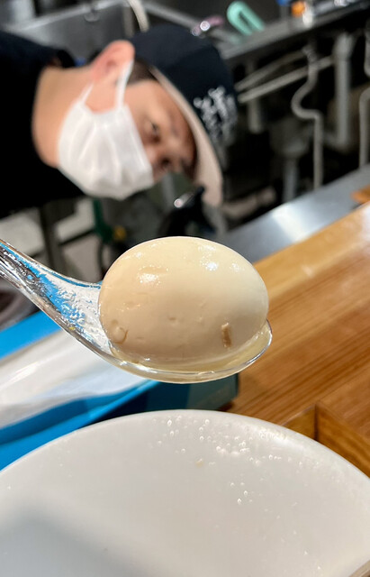 今日の味玉はいつもよりしっかりと出汁の味が染み込み、半熟具合も完璧。