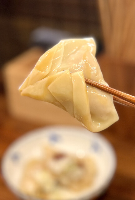雲呑一つは辛味を残してスープ割りを器に注ぎ、残ったタレを加えて食べる事を強く推奨