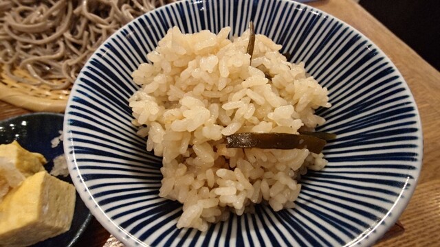 ランチセットは+300円で味付き小ご飯と小鉢が付いてくる