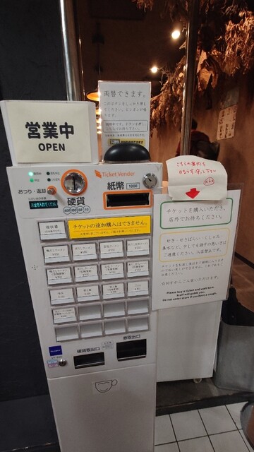 食券制で入口外に置いてある食券機で食券を購入したあとは案内があるまでは外で待つシステム