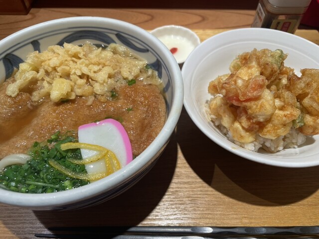 今回は「ミニかき揚げ丼」のビジュアルに惹かれ、うどんをどうするか迷ったあげく、「きつねうどん」をチョイスしました。