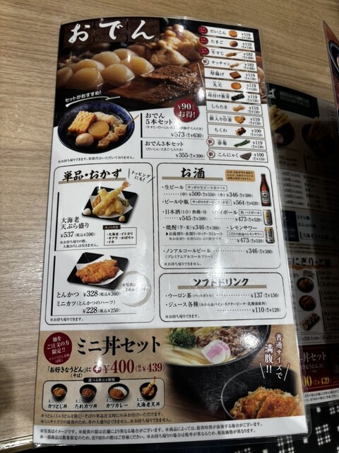 いずれもミニですが、ミニ肉ごぼ天うどんとミニたれカツ丼、さらにぼた餅も付いてこのお値段はお得感があります。