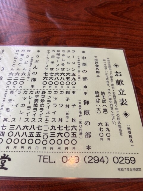 毛呂山食堂(毛呂、東毛呂/ラーメン、食堂、うどん)