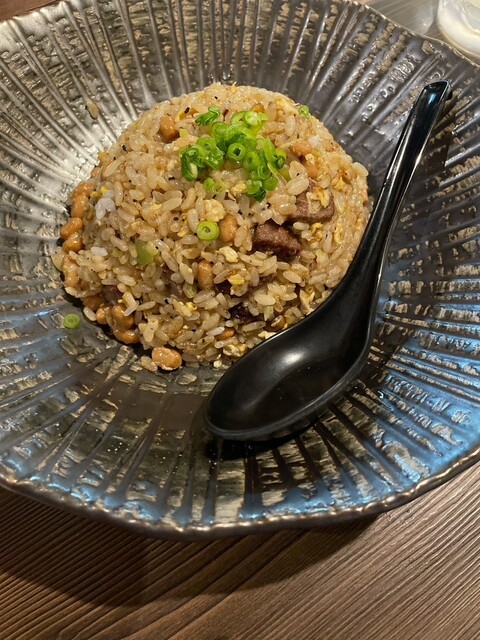締めは前回お腹いっぱいで食べれなかった納豆炒飯。