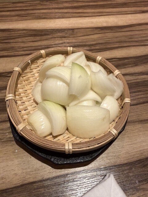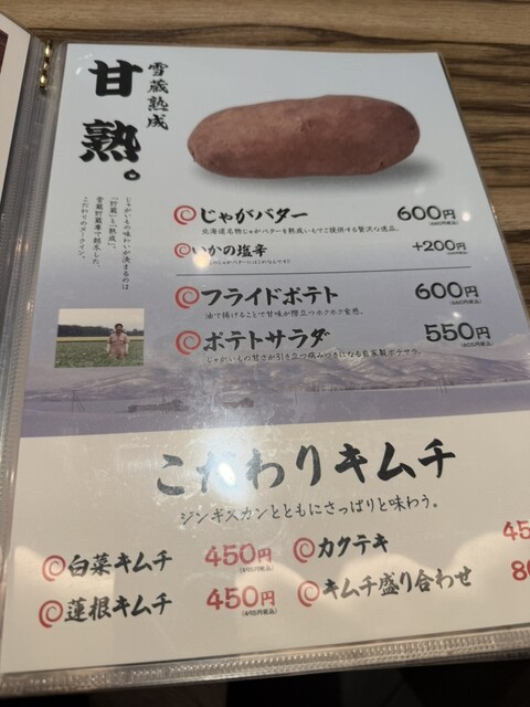 食べ物は白菜キムチ、クレインフエッドラムの肩ロースと絶品生マトン、野菜は札幌黄を注文。