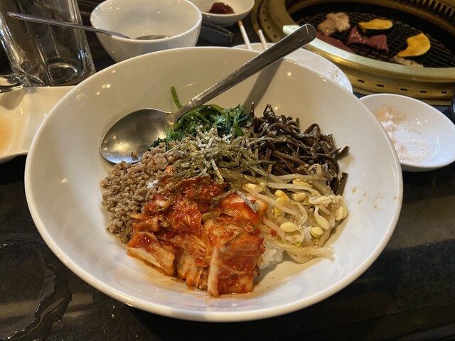 ハッピミートさんにまたまた訪問!やっぱり〆は焼きビビンバ。熱々の石鍋でおこげを作りながら食べるのが最高!香ばしさと具材のバランスが抜群で、最後まで飽きません。お肉も相変わらず柔らかくジューシーで、何を食べても間違いなし。今回も大満足でした!