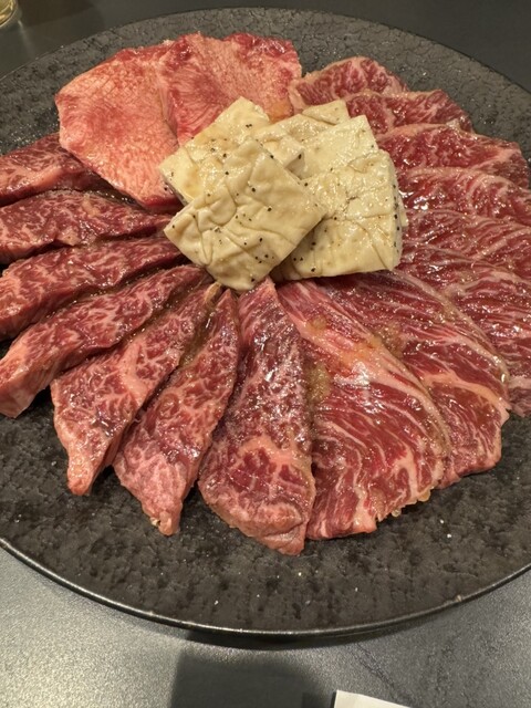 (牛タン厚切り、知床和牛サガリ、カリトロホルモン、USプライム等級ハラミ)