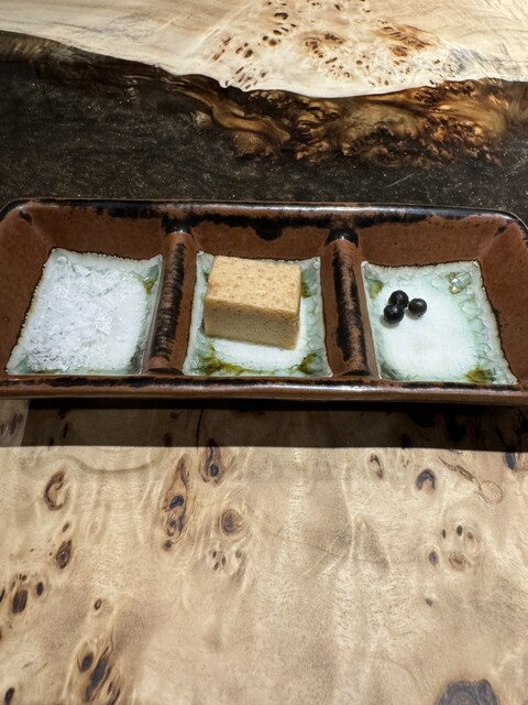 本マグロ漬け、松川鰈昆布〆、水蛸梅肉ソース