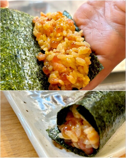 〆は、トロ、ウニ、イクラが入った心に残る手巻き1,200円