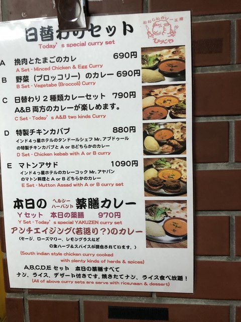 ランチタイムは日替わりカレー2種とお肉料理の組み合わせが5種類。