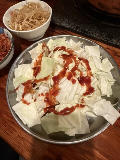 瓶ビール・キムチ・もやしナムル・お通しキャベツは既にスタンバイ済み。