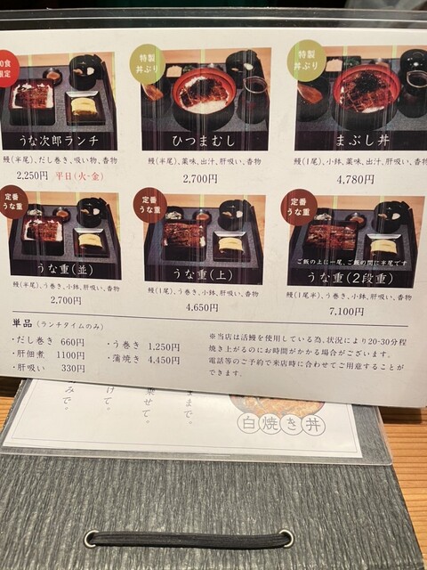 「うな重(上)」3つと「まぶし丼」1つをオーダー。