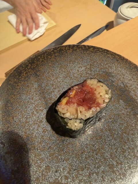 トロの濃厚さと、たくあんの食感が絶妙。