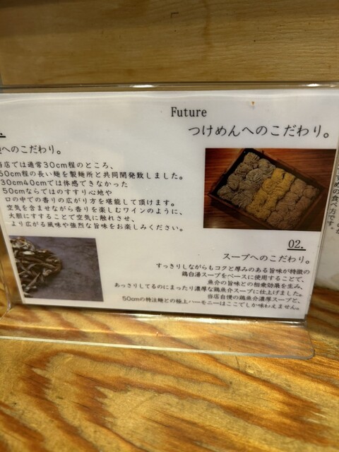 つけ麺は並盛か大盛を選べました。大盛りは+50gとのことだったので