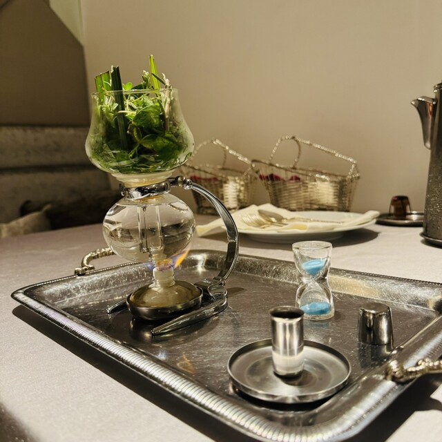 扉を開けると、静謐な空間に食器が全て高級ブランドのchristofle!!!