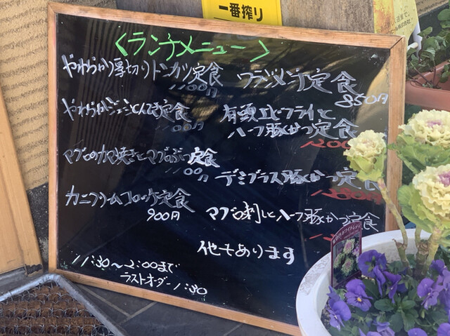 入口横に、ランチメニューが書いてある黒板が設置されている。