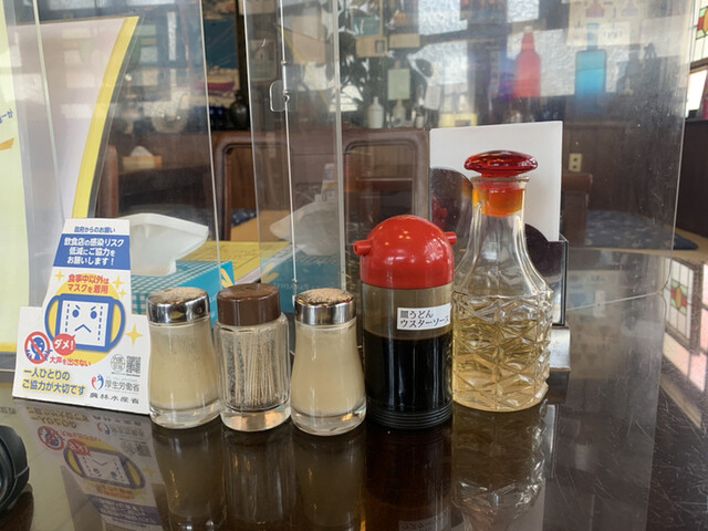 卓上調味料はコショウとお酢、皿うどん用のウスターソースとシンプルですね。