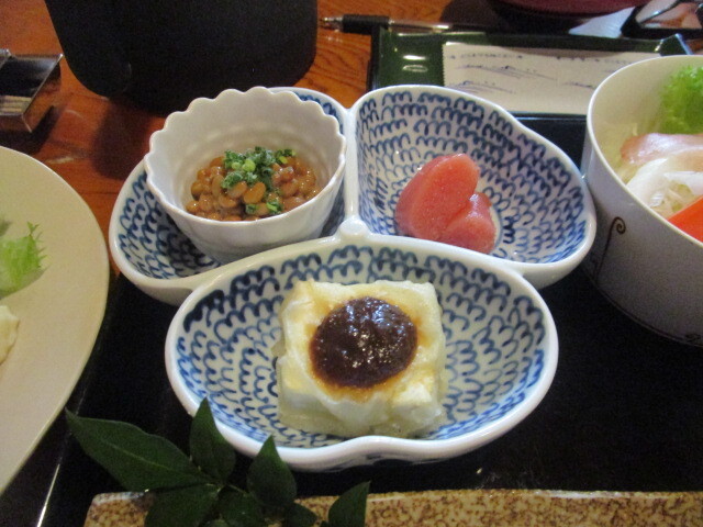 連泊し、2日目は夕食をほかでいただくため朝食付きプランでしたが、連泊だったためか朝食の内容が前日と少し変わっていました。中でも焼き魚が身がふんわりととてもおいしかった。目玉焼きの焼き加減もベーコンのカリカリ感も丁度良い好み。梅干しは昔ながらの無添加の天拝梅。これと明太子があると食べ過ぎてしまいます(笑)。炊き立てご飯がいい香り。旅館の朝食はいいですね。朝から幸せ気分でした。