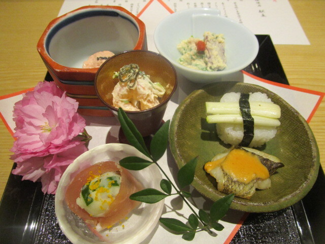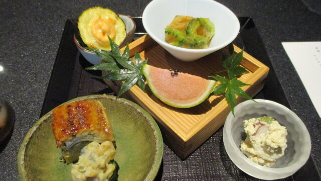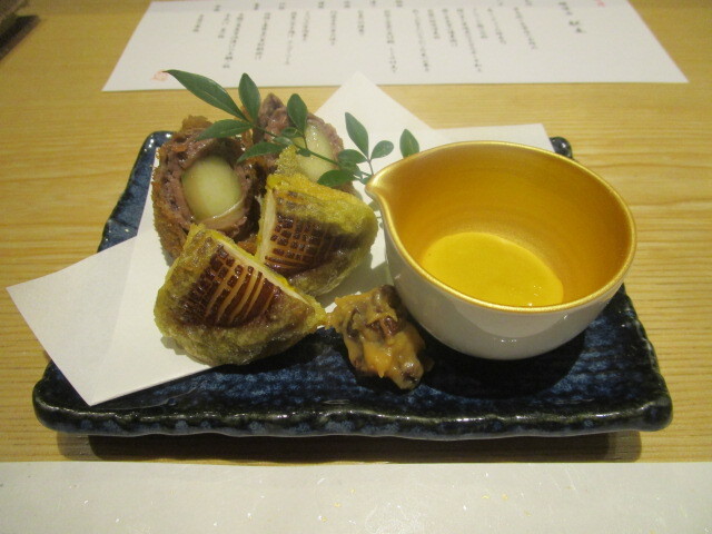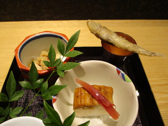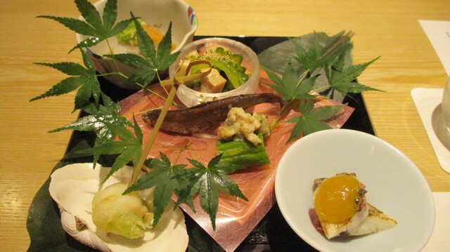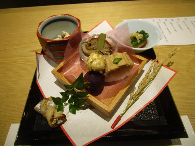 八寸はどれも美しくおいしい。太刀魚の編み込み・・・手が込んでるなぁ。