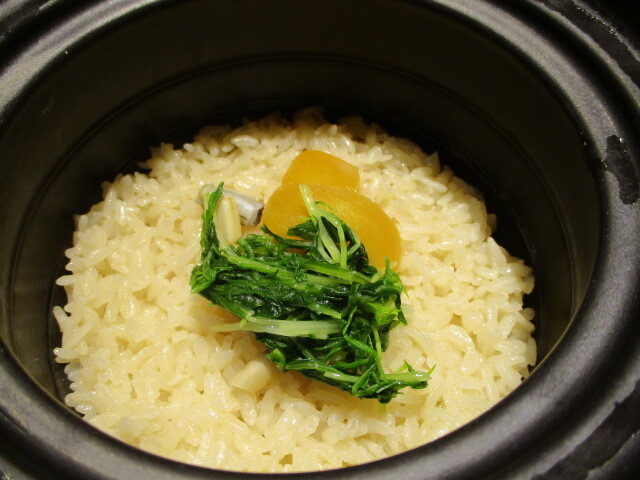 香ばしい焼き魚を合わせた炊き込み土鍋ご飯に、お刺身で使われたクエのアラを使った赤だし。