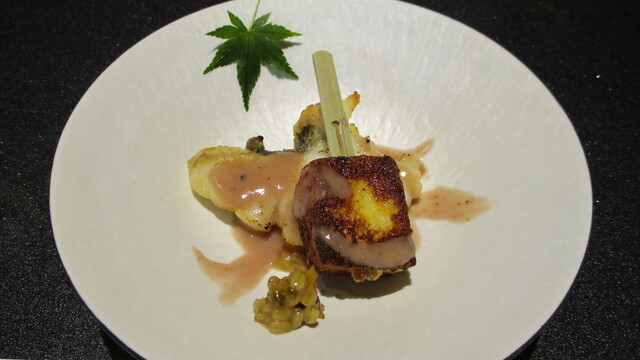 甘未 さんぴん茶のプリン 林檎ワイン煮
