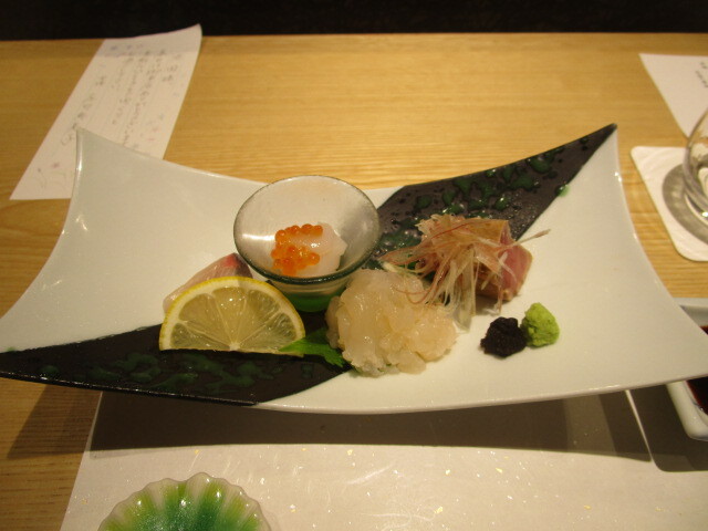 お造り 四点盛り イカと雲丹 アラ 寛八 マグロ