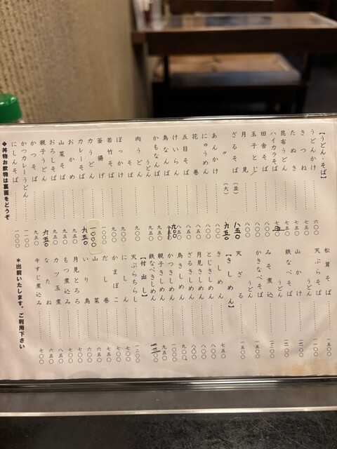 店内も昭和感満載のレトロなおうどん屋さん、BGMは、民謡がながれています。