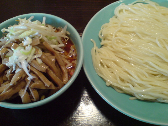 それで、今回選んだメンマですが、これ(私的に)正解です。歯ごたえのある、割と甘目の味付けのメンマで、これを麺と一緒に口に入れると、つけ汁の酸・辛と相まって自分にとってかなりベストな味のバランスになりました。私以外の方にはちょっと甘く感じるかもしれませんが、ここでのメンマはマストです。ここの野菜入りも好きなのですが、次回からはメンマも入れてもらおうと思います。大盛りにすると大台(¥1000)越えてしまいますが。