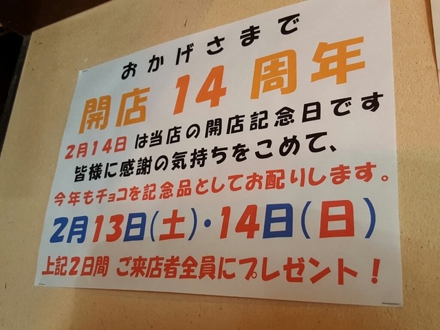 201602 2016年2月14日で開店14周年