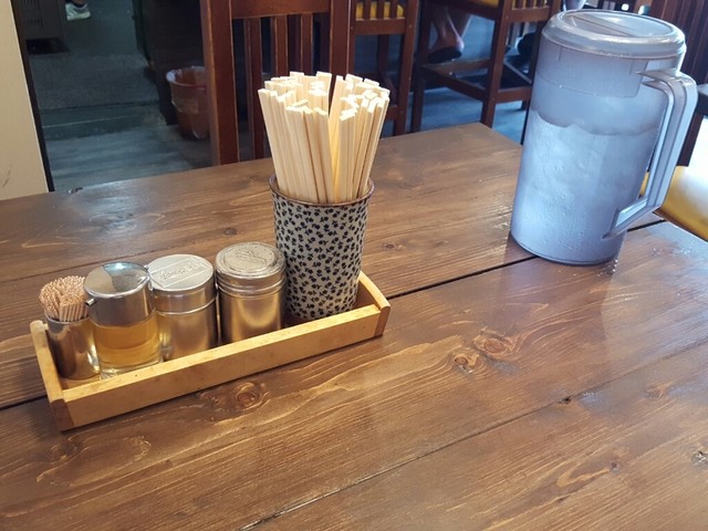 14:00位なら列は無いだろう、そう思いながら店の前を通りかかる。案の定列は無いので車を駐車場に停めていると、その間に中年の男性が来たらしく外で待っている。そのため、私もその後で待つ事に。五分ぐらいで男性が通され、その後店の方に相席でも良いかと聞かれたので、構わないと答える。